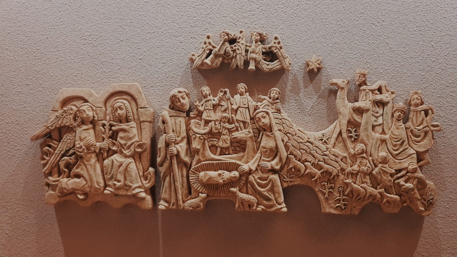 Le bleu de la robe de Marie, le brun du manteau de Joseph, le blanc du linge de Jésus